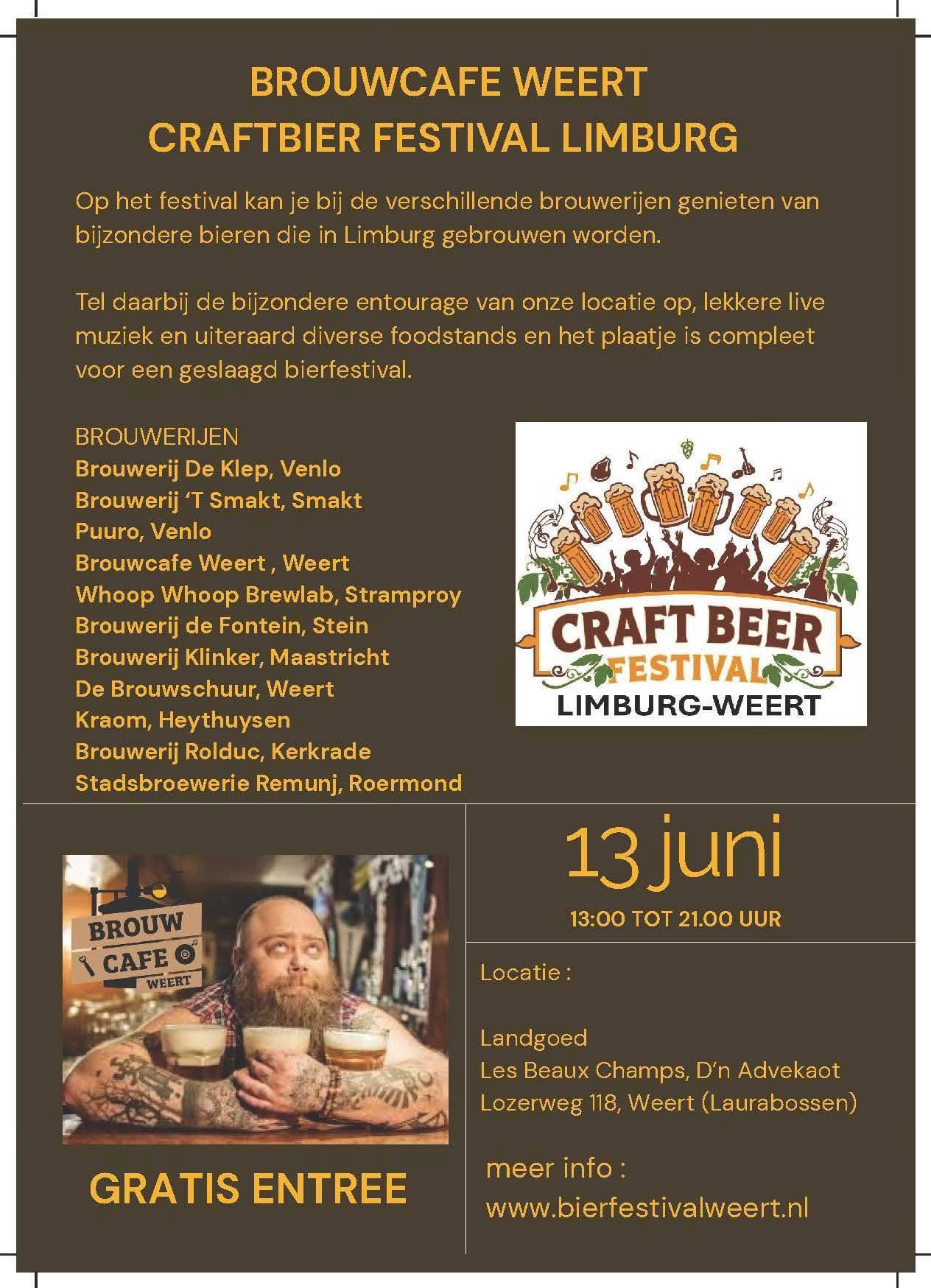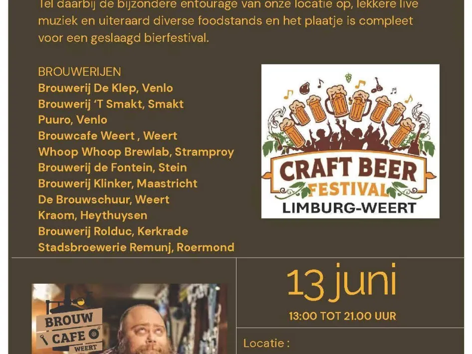 Op de eerste editie van het Brouwcafé Weert Craftbier Festival Limburg kun je genieten van bijzondere bieren die in Limburg gebrouwen worden.